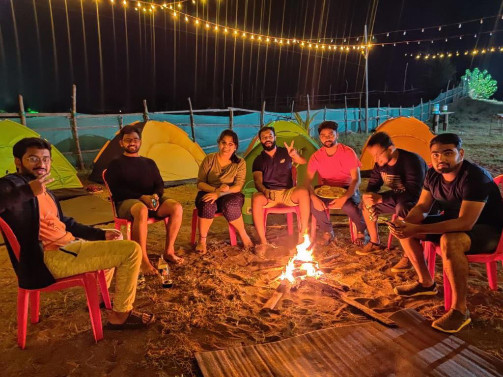 Frisbee, or just getting a dip in the water. The nighttime is the best as you can see the star-filled sky, light up a bonfire, try your hand at BBQ & chill with your buddies. The sea breeze and the ambience at our campsite double up the fun quotient. Please chat with us for more about Kashid beach camping.