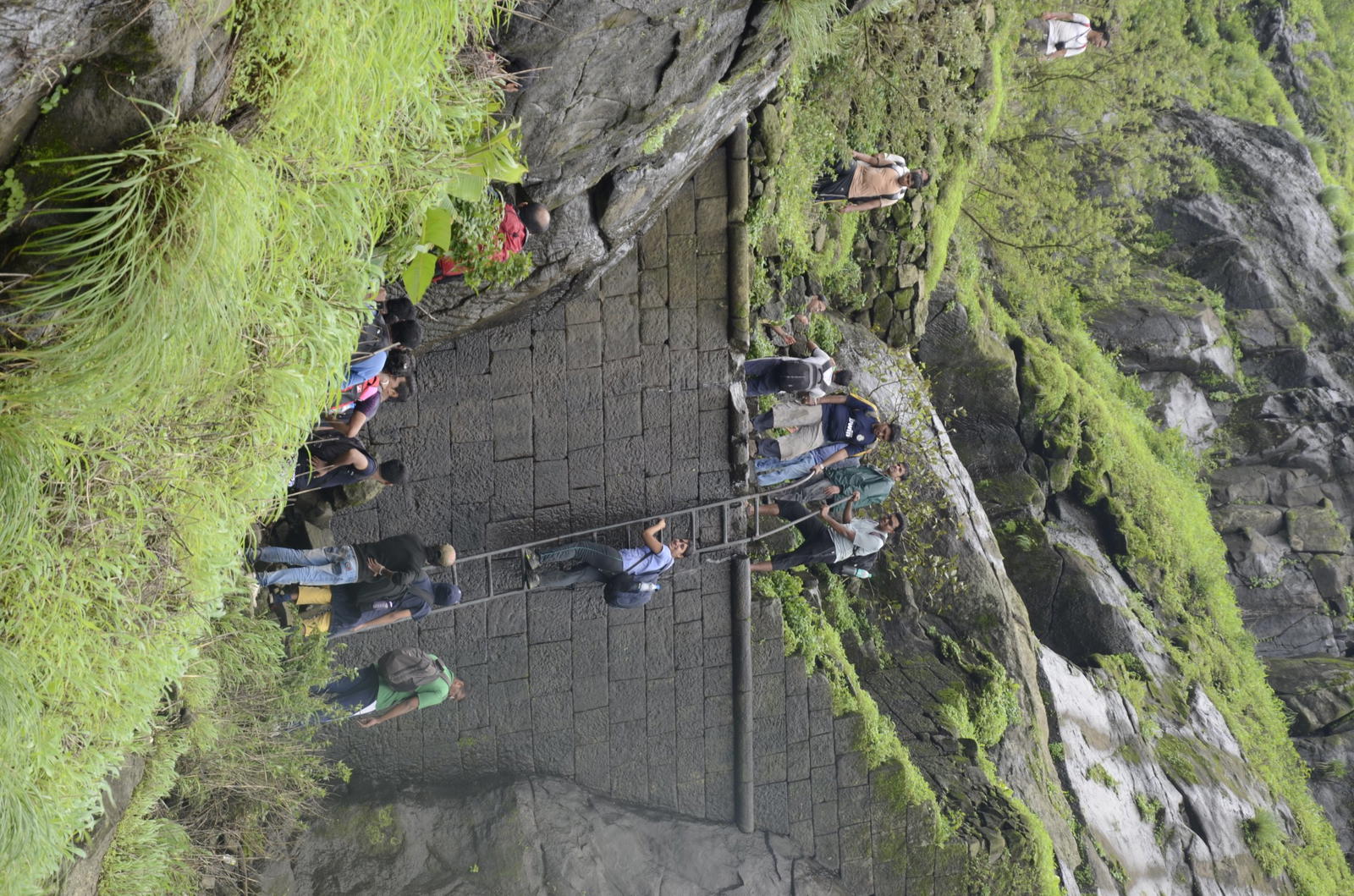 The hiking trail near Matheran is crowded during the weekends, and thousands of trekkers either descend or ascend the Peb fort trek route. Trek route is slippery in sections, has one rock climbing patch, a large traverse, few steel ladders to climb and descend. Good hiking shoes are a must for this trek. Watch out for falling rocks on the Peb Vikatgad.